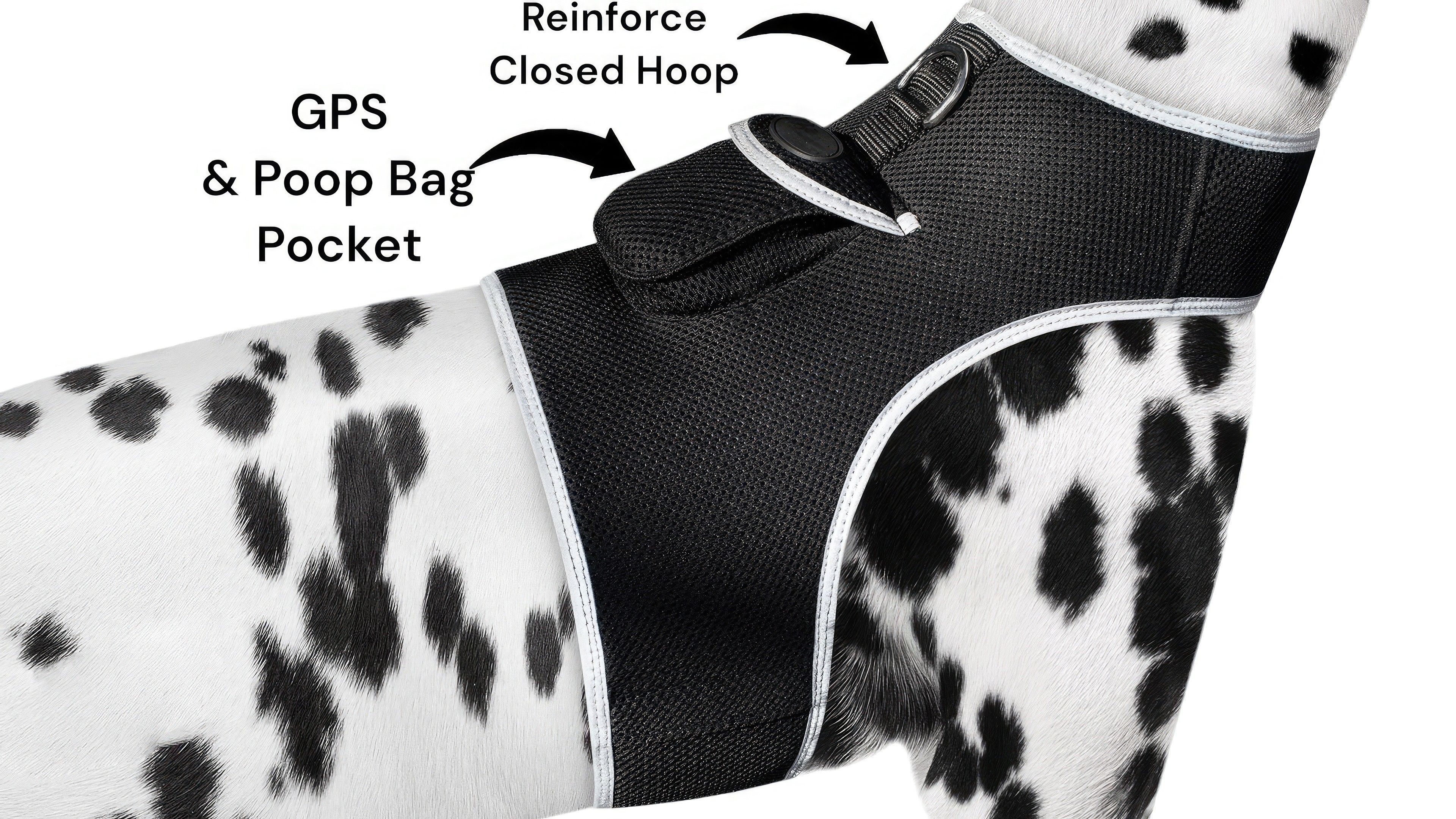 The pocket was designed to securely lock, and secure the GPS tracker device in place while your pet runs, plays, or swims. Yet easy for human to remove to charge the GPS pet tracker device. Oh! and dont forget to store your poop bags!