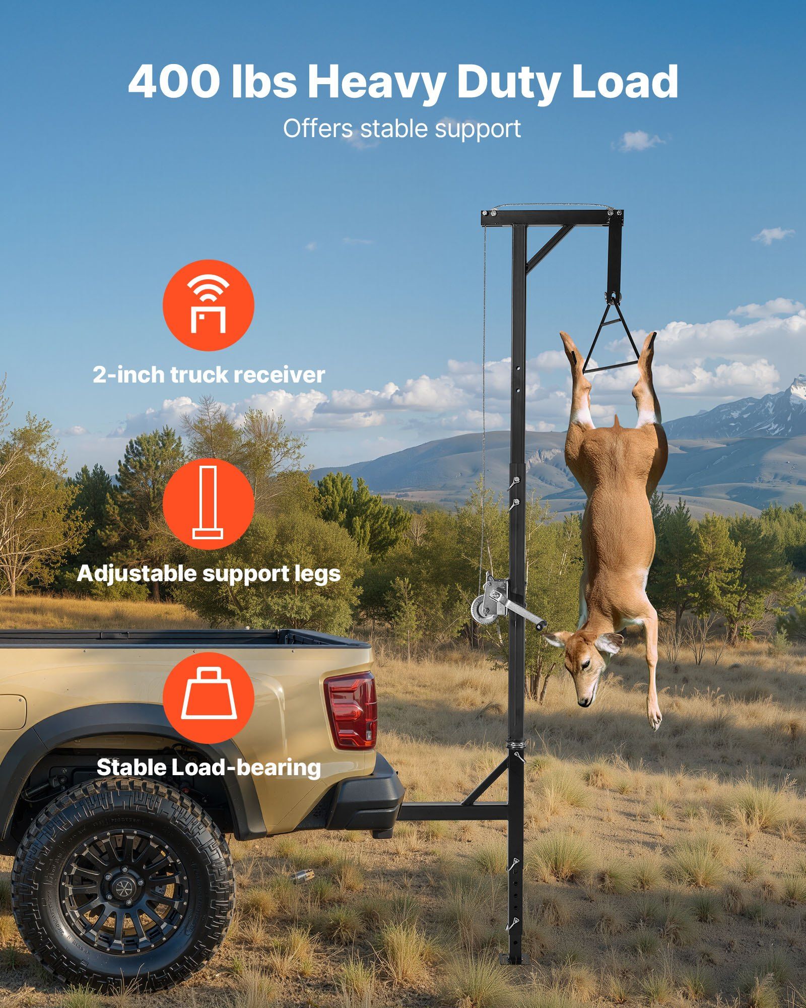 VEVOR Truck Hitch Game Hoist, 400 lbs Load Capacity, Hunting Deer Hoist with 2-inch Receiver, 360-Degree Swivel Shaft & Adjustable Height VEVOR Truck Hitch Game Hoist, 400 lbs Load Capacity, Hunting Deer Hoist with 2-inch Receiver, 360-Degree Swivel Shaft & Adjustable Height VEVOR Truck Hitch Game Hoist, 400 lbs Load Capacity, Hunting Deer Hoist with 2-inch Receiver, 360-Degree Swivel Shaft & Adjustable Height