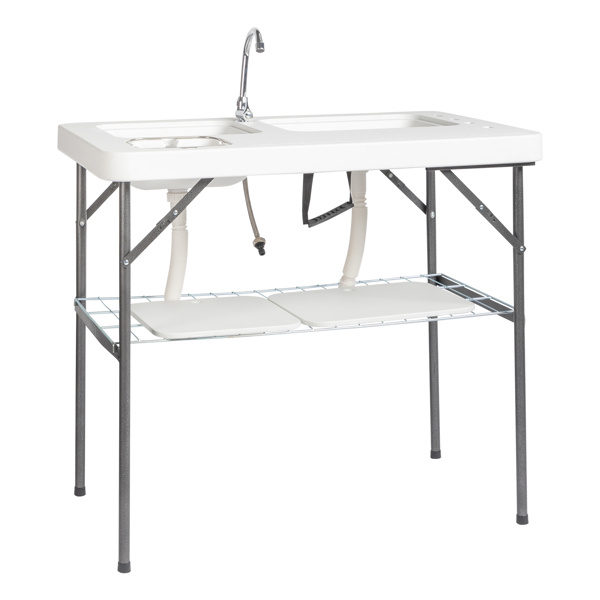 Do you enjoy picnics? If so, this Outdoor Folding Multifunctional Fish Table Picnic Table is highly recommended to you. It can help you with quick and convenient fish killing and cleaning. This table adopting high quality material, which features sturdy and durable. It includes spray gun and faucet, so that it's very convenient for you. Moreover, foldable design makes this table easy to store and convenient to carry. It's good for cutting meals, vegetables, fish, etc. Don't hesitate, just take this practical fish table home!