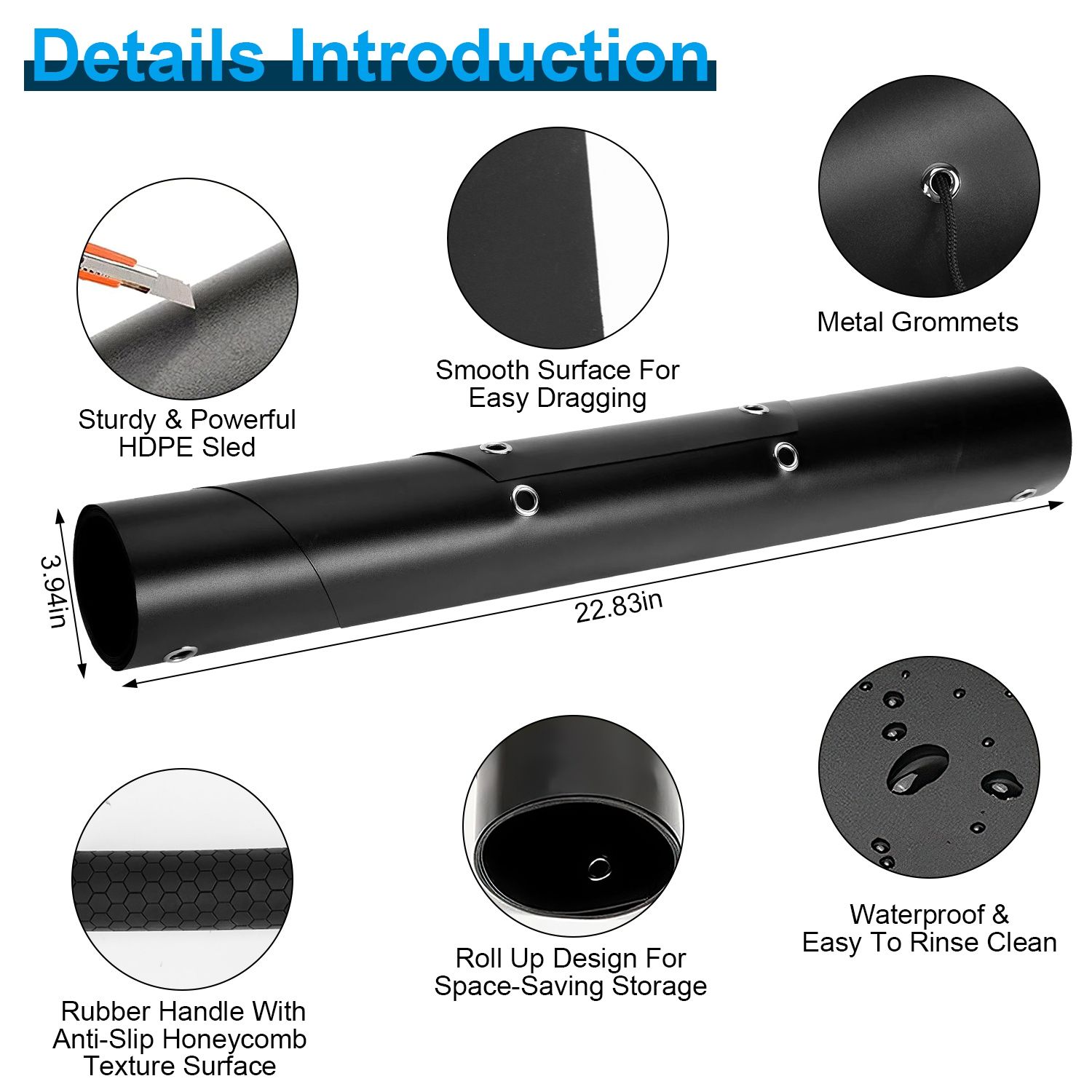 *Convenient Drag Handle*:Come with a convenient rubber handle with honeycomb texture surface,which is anti-slip,allowing you to drag the sled in an upright position,effectively making your dragging more effortlessly and reducing fatigue.