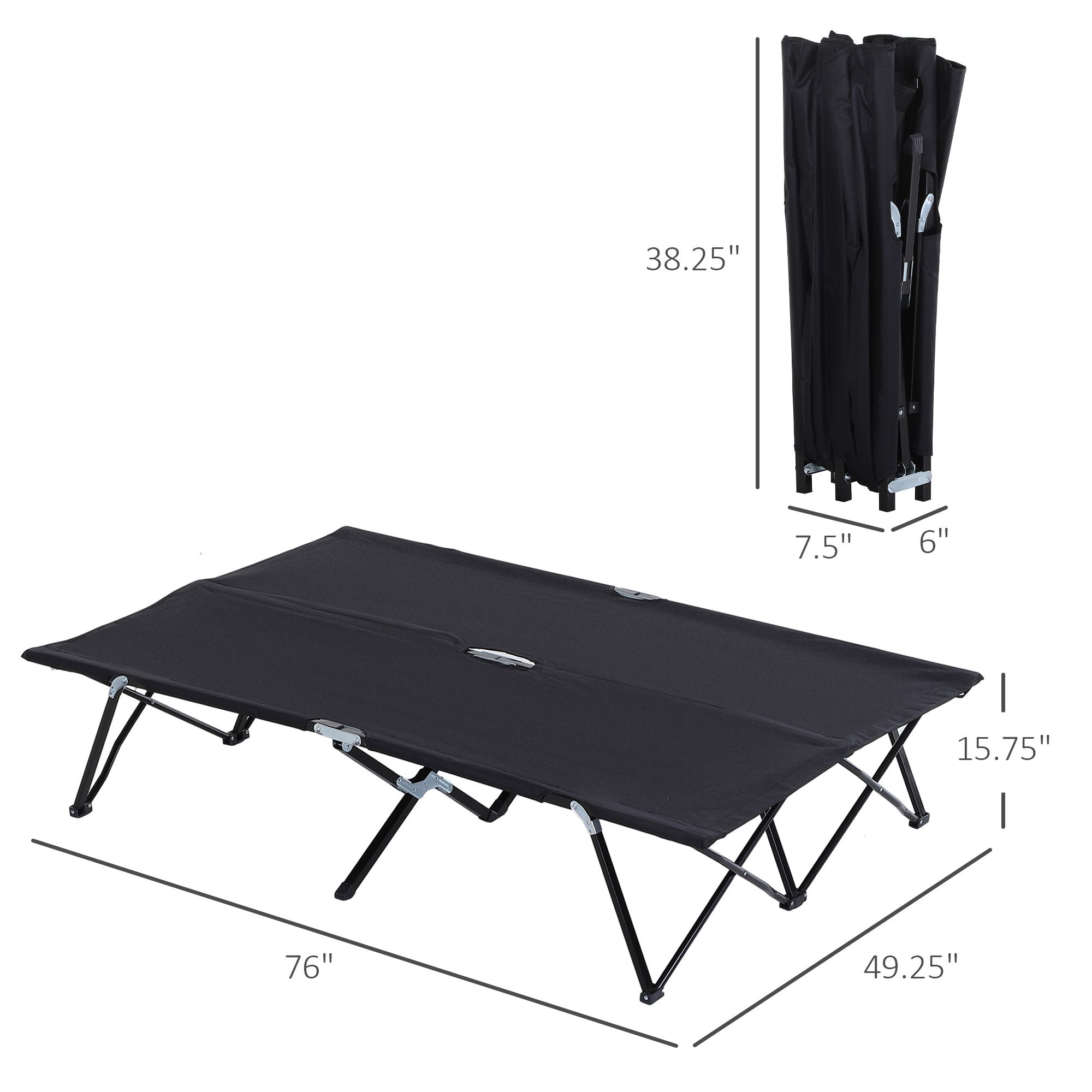 Elevate your outdoor sleep with Outsunny. Our camping beds for adults are extra large with a 15" raised frame. Sleeping on a cot means sleeping up and away from outdoor night-time discomforts like rocks, sticks, and the typical deflated air mattress. Our design is portable, and foldable, compacting down to fit into a car-friendly carrying bag. Get out, get comfortable, get Outsunny.