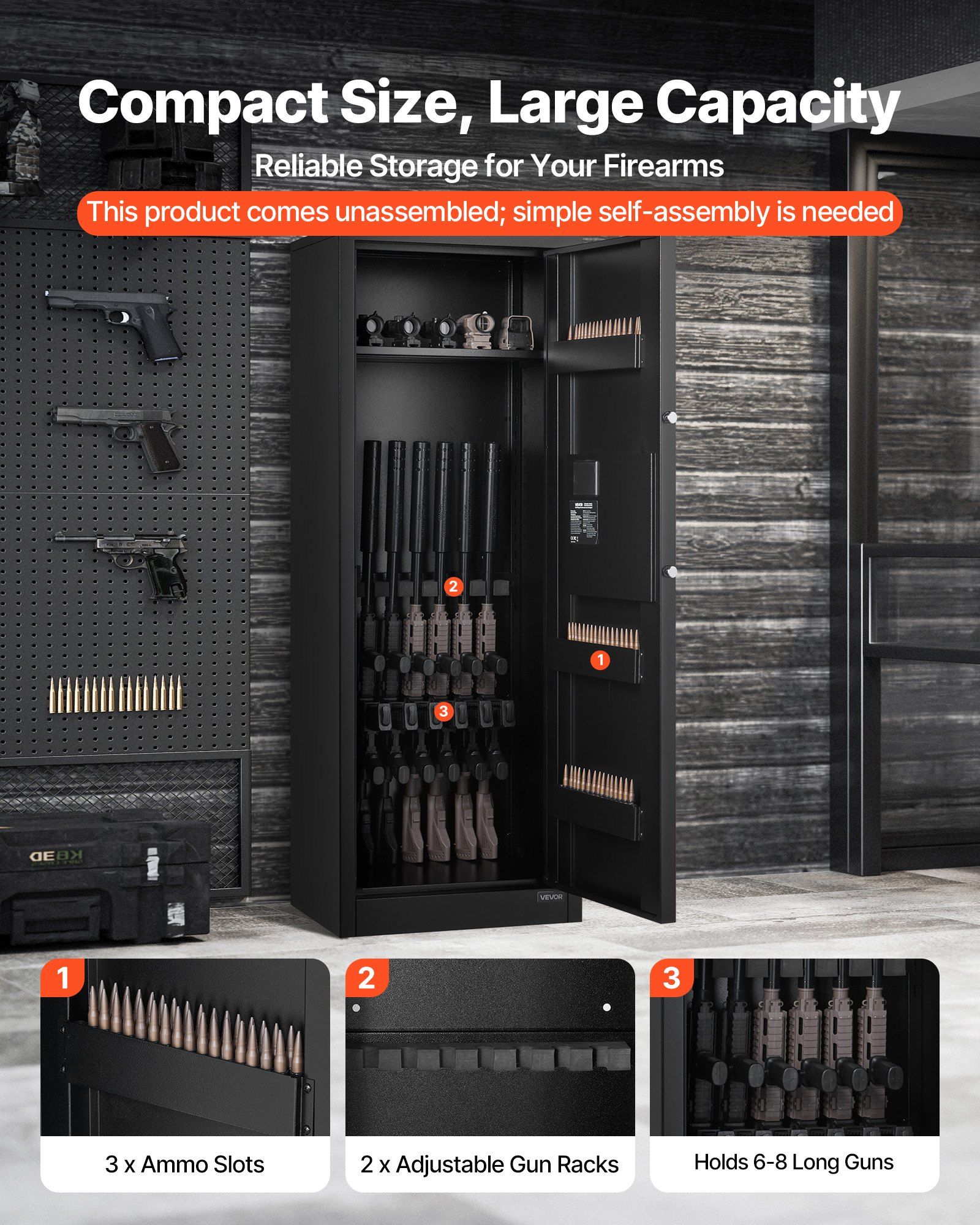Home > VEVOR 6-8 Gun Safe, Long Gun Cabinet for Rifles and Pistols, Quick Access Rifle Safe with 3 Ammo Slots and 2 Adjustable Racks