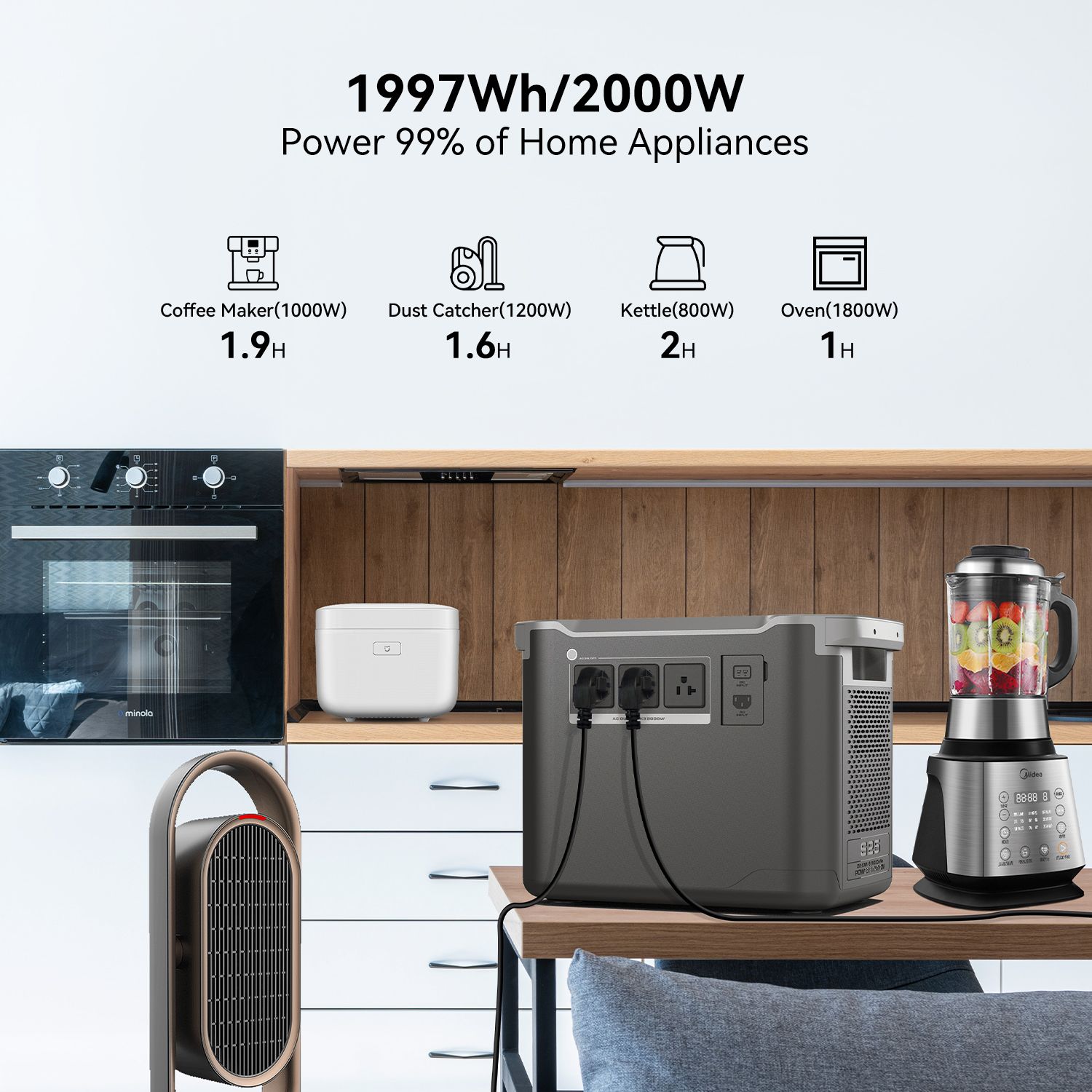 3.Power 99% of Your Household Devices. Run pretty much any of your home appliances with up to 2000W. With 12 outlets, there's space for any device